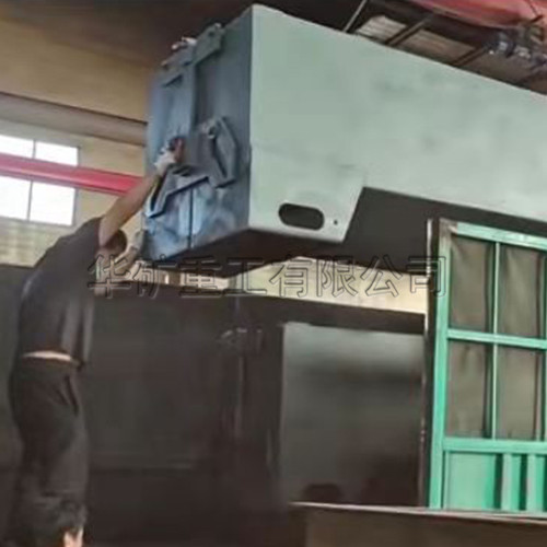 3.卸料后,起吊鉤在運(yùn)輸起吊環(huán)上,當(dāng)?shù)蹉^向上撿起時(shí),箱體由于自身重力的原因,又完成兩個(gè)半邊箱體的合攏,可以循環(huán)使用裝或卸物資。