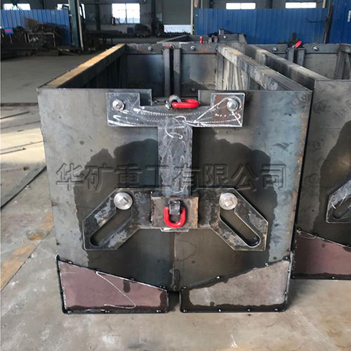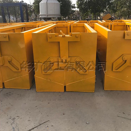 1.自卸式集裝箱主要用于井下物資、貨物的運(yùn)輸。運(yùn)輸時(shí),起吊鉤在運(yùn)輸起吊環(huán)上,兩個(gè)半邊的箱體底部由于擠在一起,加上箱體和貨物的自身重力,這時(shí)底部是越拉越緊,整個(gè)箱體是閉合狀態(tài),此時(shí)可以視作一個(gè)密閉的箱體,進(jìn)行物資或貨物的運(yùn)輸。