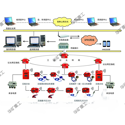又叫做礦山壓力及頂板離層監(jiān)測(cè)系統(tǒng),主要用于實(shí)時(shí)、在線監(jiān)測(cè)液壓支架工作阻力、立柱伸縮量、超前支承壓力、煤柱應(yīng)力、錨桿(索)載荷、巷道變形量及人員定位和管理等。
