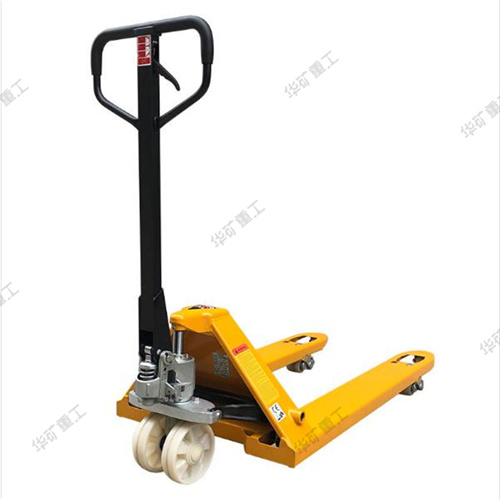 在使用時(shí),將貨叉插入托盤孔內(nèi),由人力驅(qū)動(dòng)液壓系統(tǒng)來(lái)實(shí)現(xiàn)托盤(貨物)的起升和下降,并由人力拉動(dòng)完成搬運(yùn)作業(yè),是托盤運(yùn)輸工具中使用簡(jiǎn)便、有效、常見(jiàn)的裝卸搬運(yùn)工具。