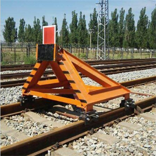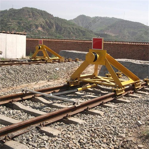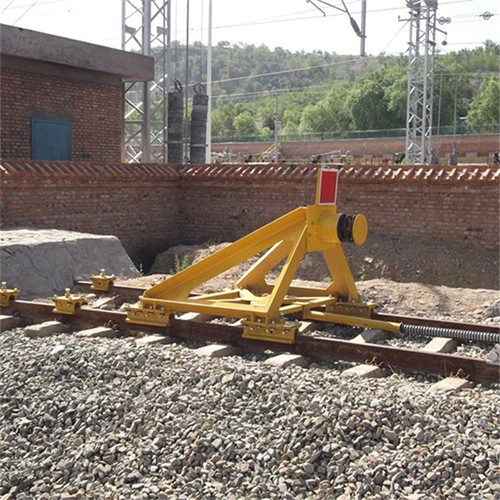 固定擋車器主要用于鐵路盡頭線上的防撞擋車安全防護(hù)設(shè)備,緩沖頭與車鉤之間通過緩沖橡膠板接觸,承受溜逸車輛車鉤的撞擊,迫使溜逸車輛停止溜逸,針對使用單位的實際情況,為滿足使用單位提出的具體要求而設(shè)計的產(chǎn)品。占用線路短,結(jié)構(gòu)簡單,造價較低,維護(hù)方便。可以用在車輛編組較小、沖擊速度不高的場合。