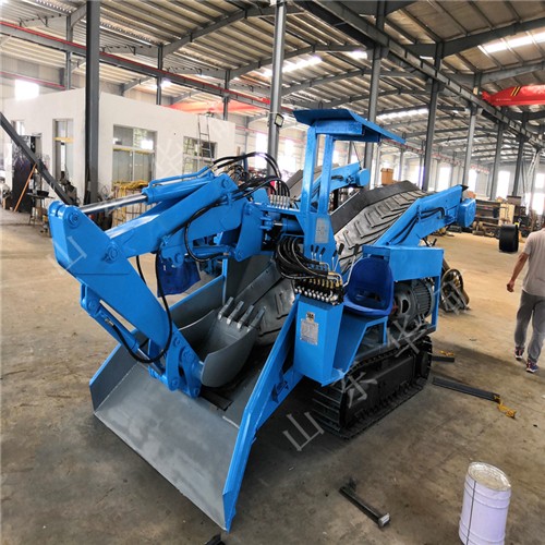 采用底盤分體設(shè)計(jì),通過力強(qiáng),可以靈活的通過巷道“小支脈”。輸送大架采用分體設(shè)計(jì),對于豎井礦山下井安裝極為方便。皮帶采用pvg高拉力阻燃帶使用壽命長,可保證掘進(jìn)巷道距離為360m以上。 挖掘式裝載機(jī)扒渣機(jī)具由轉(zhuǎn)彎靈活,操作簡單,掘進(jìn)巷道不用調(diào)頭,效率高